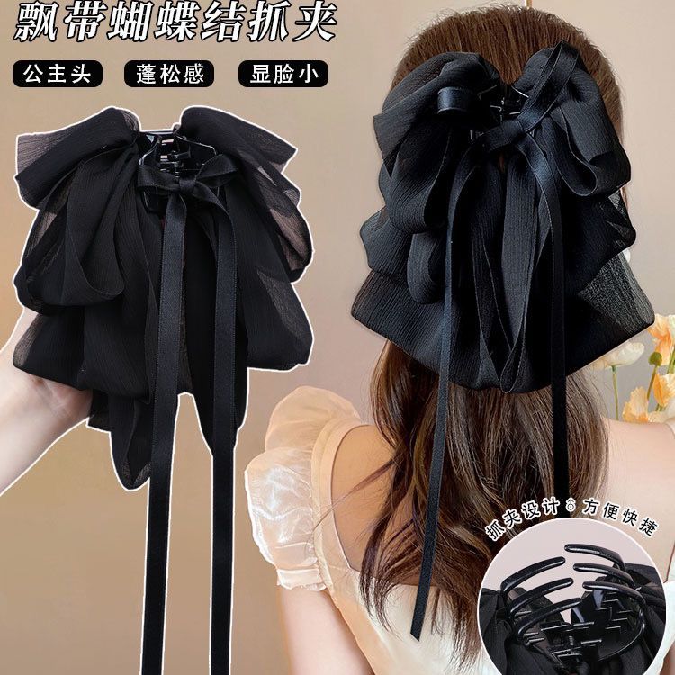 ヘアクリップ 韓国系デザインリボングリップ女性高級感2025新型レトロヘアピン後頭部皿髪サメ髪飾り 百掛け 韓国ファッション メガ割 ヘアクリップ