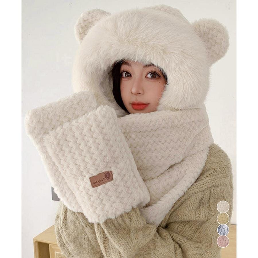 人气 新作 くま耳ニット帽子 マフラー 手袋 一体型 その他 ストール マフラー