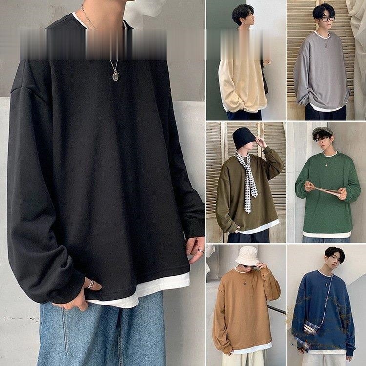 スウェットトレーナー メンズレディース 春秋 長袖Tシャツ 無地 ゆったり カップルプルオーバートレーナー フェイクレイヤード オシャレカジュアルトップス