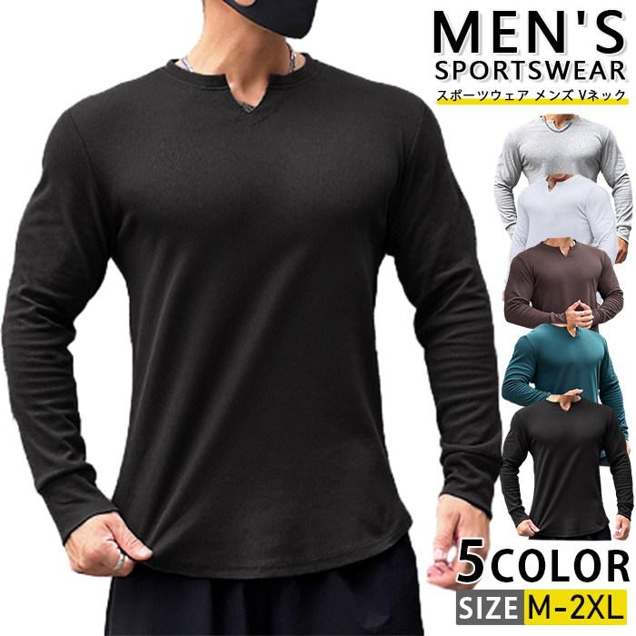 スポーツウェア メンズ トップス 長袖 Vネック ゴルフシャツ ゴルフ インナー トレー ニングウェア ゴルフウェア Tシャツ