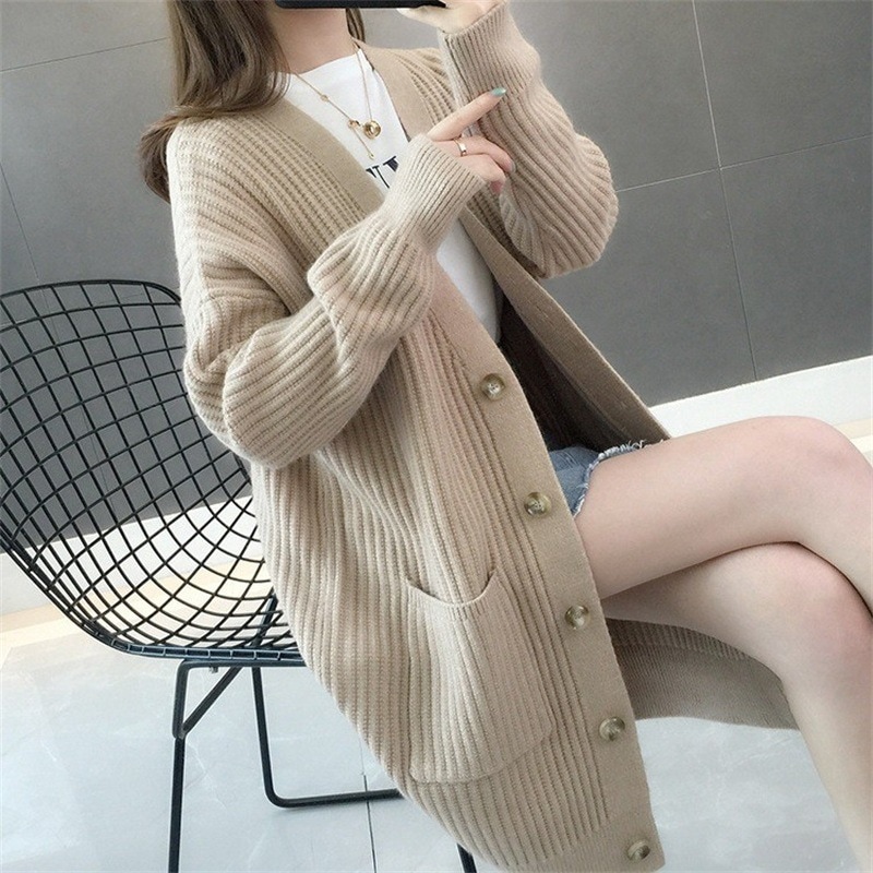 大人気なリブニット ロングカーディガン ニットアウターレディースファッション 百掛けカーディガン 気質通勤 長袖 Vネックトップス厚手 前開き