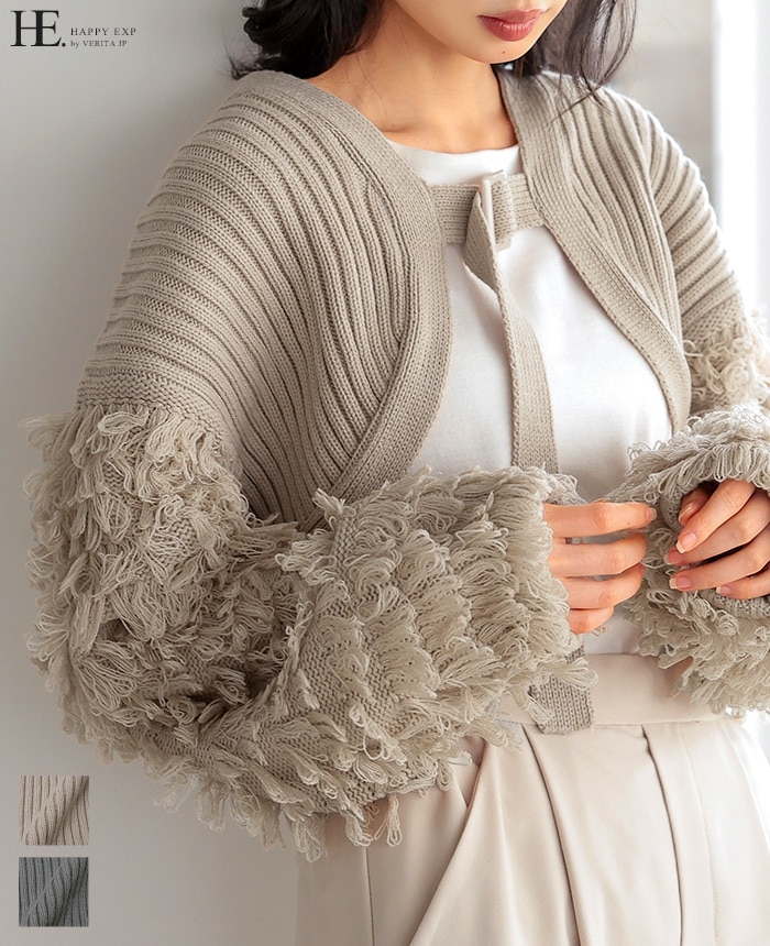 Happy急便 [NEW] 華やかにスタイルアップ ループニットボレロ 32167 2024冬新作 カーディガン