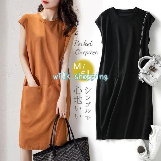 ワンピース Tシャツ レディース 綿 綿混紡 大きいサイズ ゆったり 春夏 ロング丈ビッグポケット ノースリーブ その他 ワンピース ドレス