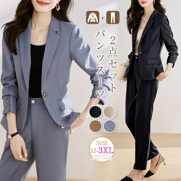 スーツ セットアップ レディース パンツスーツ フォーマル セレモニー ビジネススーツ 大きいサイズ テーラードジャケット&パンツ 2点セット 入学式 卒業式 入園式 卒園式 OL 通勤 オフィス ビ