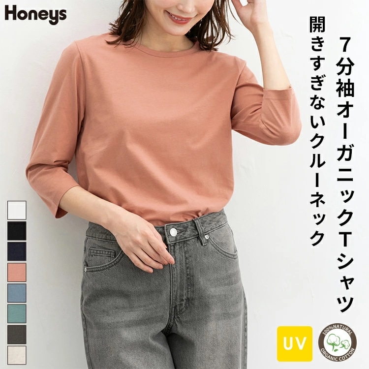 Honeys 7分袖オーガニックT トップス Tシャツ カットソー オーガニックTシャツ オーガニックコットン Tシャツ カットソー