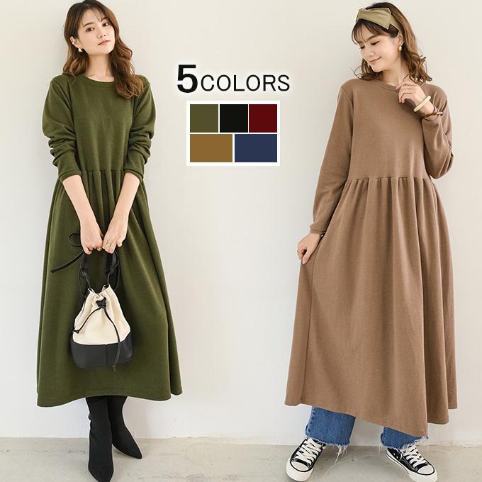 [最安値挑戦] ワンピース レディース ウエスト切替 スウェット素材 ロングワンピース タック入 M L XL 半袖ロング マキシ丈ワンピ
