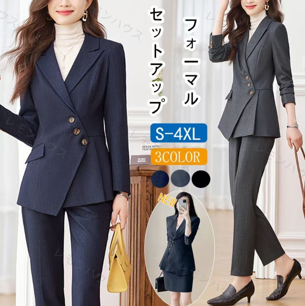 スーツ レディース パンツスーツ フォーマル 大きいサイズ スーツ ビジネススーツ 大きいサイズ テーラードジャケット&パンツ 2点セット 入学式 卒業式 入園式 卒園式 OL 通勤 オフィス