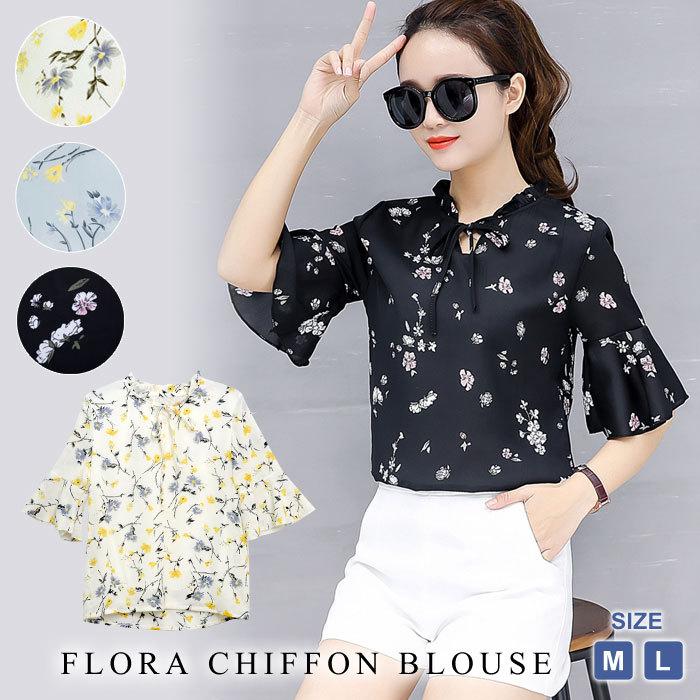ブラウス レディース 春夏 黒 花柄 シャツ・カットソー トップス レディース服