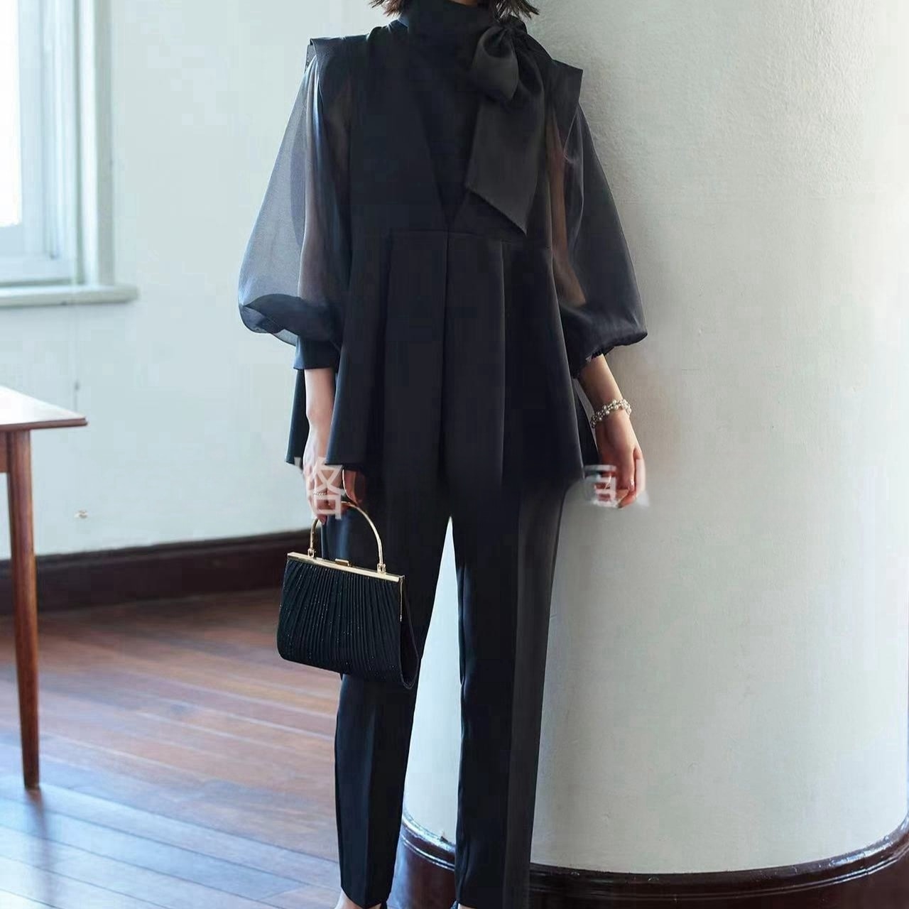 シフォンブラウス シアーブラウス ボリューム袖