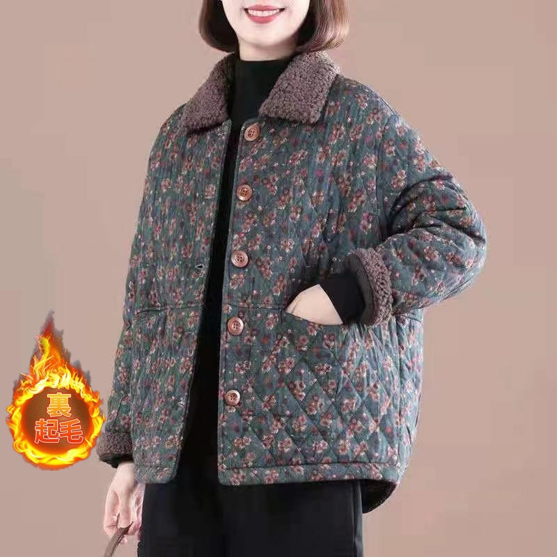 キルティングコート ジャケット ボアコート 折り襟 中綿 アウター 羽織り 上着 長袖 防寒 ショート丈 ゆったり 秋冬 花柄 大きい カジュアル 40代 50代