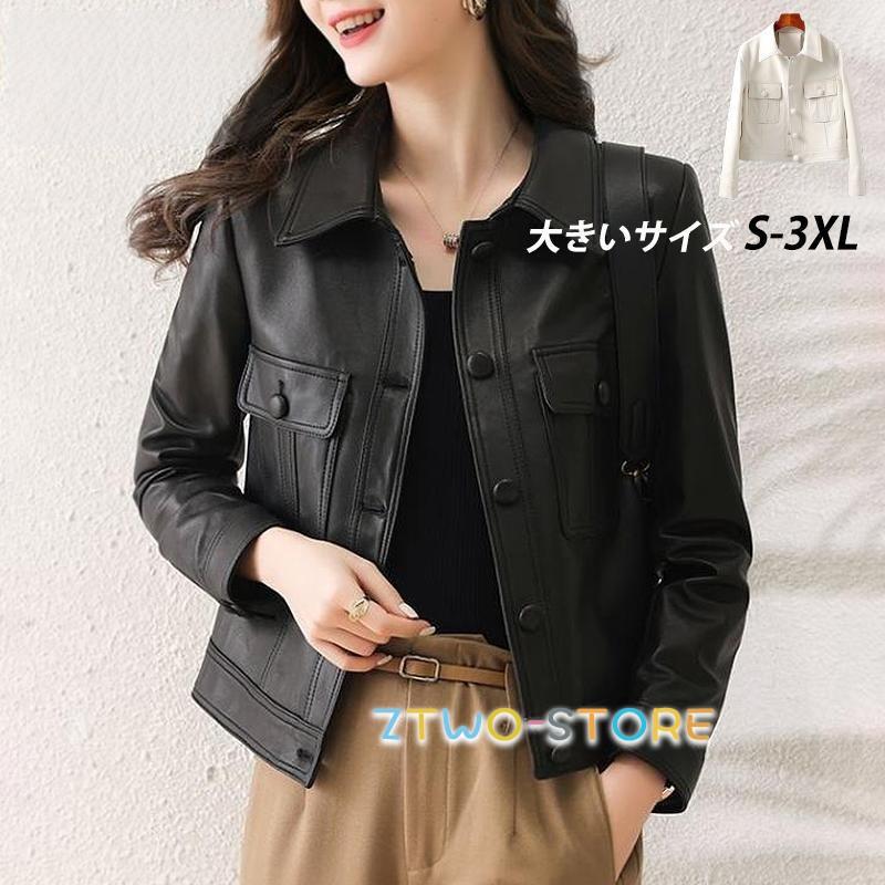 冬アウター 革ジャン レディース おしゃれ レザージャケット ショート バイク ライダースジャケット レザーコート 30代 40代 50代 春秋 大きい ジャケット レディースコート