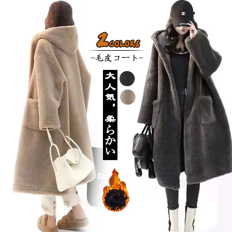 冬アウター ラムウールコート ボアコート レディース ジャケット ムートンコート 折り襟 フード付き ミディアム丈 ルーズコート アウター 着痩せ 中綿ジャケット