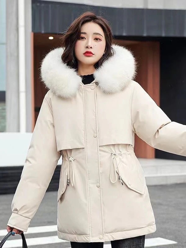 セミロング ファーカラー 裹起毛 ウエスト引き締め 大きいサイズ 保温 防風 防寒 中綿コート ジャケッ アウター 冬 韓国 コート レディース