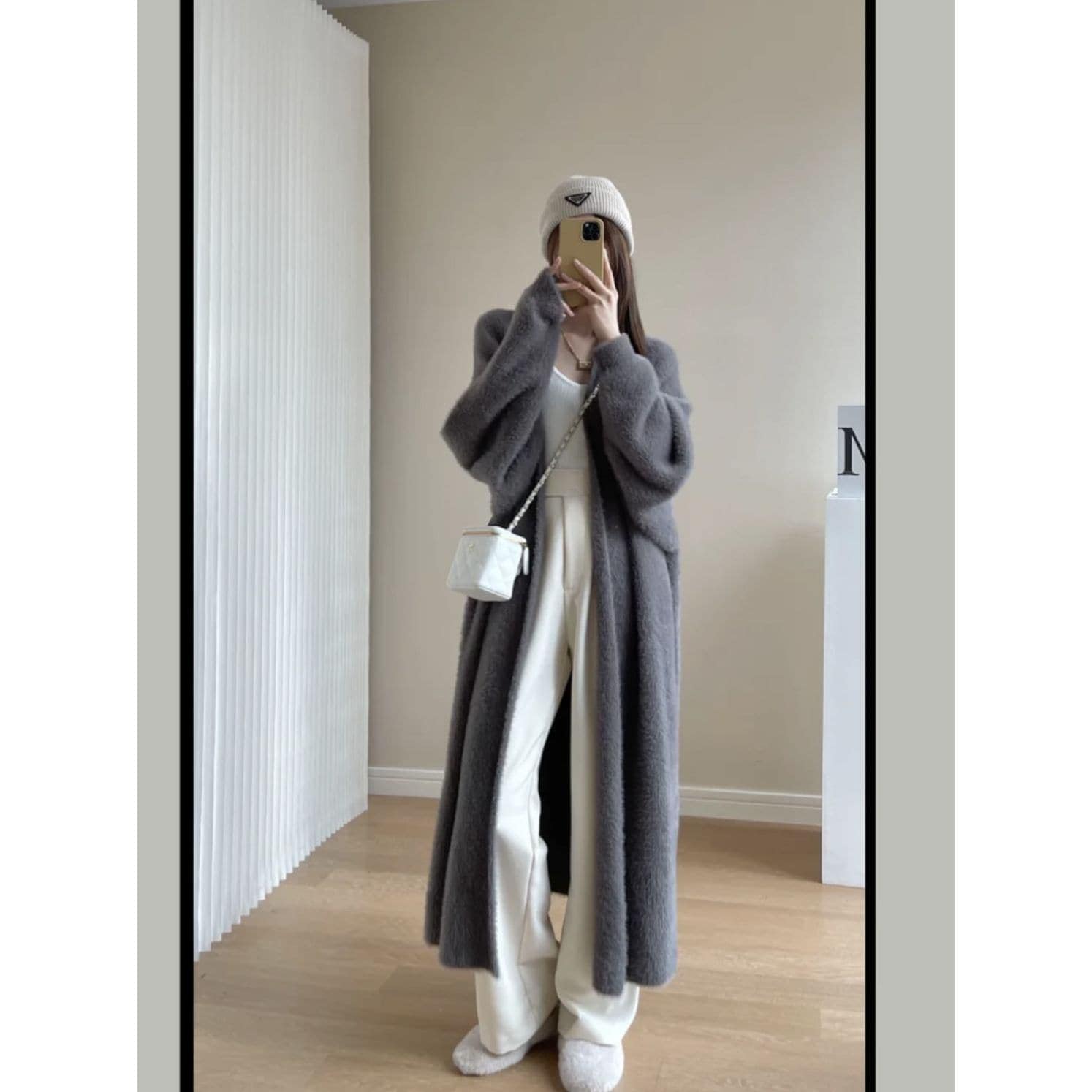 人气新作ニットカーディガン韓国ファッションベーシックニットカーディガン ゆったりスウェットアウタートップス ニットセーター セミロング丈保温 秋ジャケッ