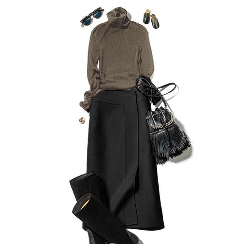 2024秋冬新品 レディース 無地 ハイネック セーター+ラシャ スカート二点セット セットアップ 体型カバー トップス レディースファッション 大きめサイズ メガ割