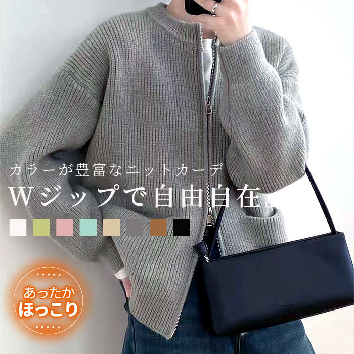 カーディガン レディース アウター ニットカーデ ジップアップ ダブルジップ ゆったり カジュアル 長袖 秋冬[郵3]^v183^ カーディガン