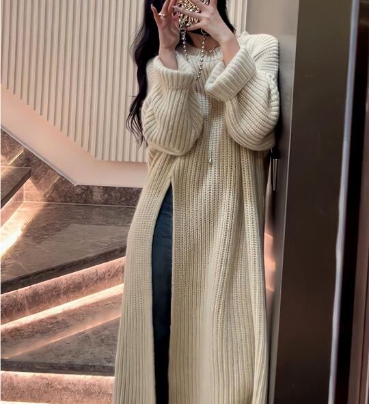 新しい やさしい セクシー レディース 怠惰な風 セーター レッド ミンク ウール ゆったり ニット1 ニット