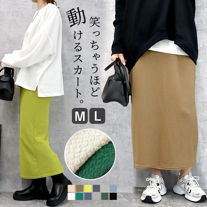 新タイプ登場 エンボス加工 ロングスカート タイトスカート ウエストゴム 体型カバー 秋 [郵2]^b405-1^ ミディアムスカート
