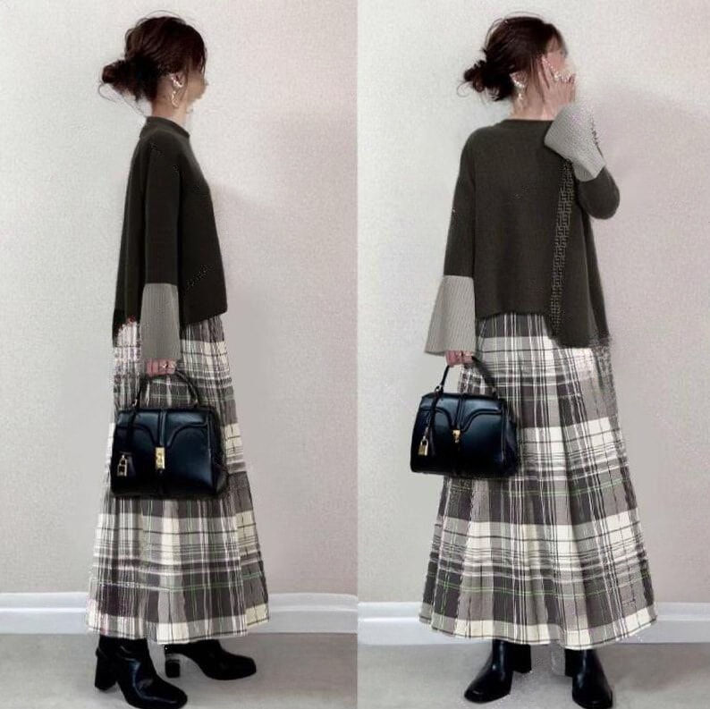 韓国ファッション シンプル ニット 切り替え ワンピース ロングワンピース 大きめサイズ ワンピース ワンピース 秋冬 長袖 Tシャツワンピース
