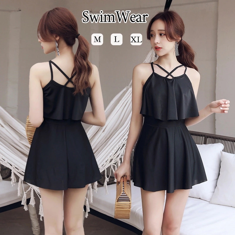 水着 ワンピース レディース 体型カバー 水着 レディース オールインワン 体型カバー水着 ママ水着 みずぎ ミズギ フリル 大きいサイズ ショートパンツ ぽっちゃり ワンピース水着 肩出し ブラック