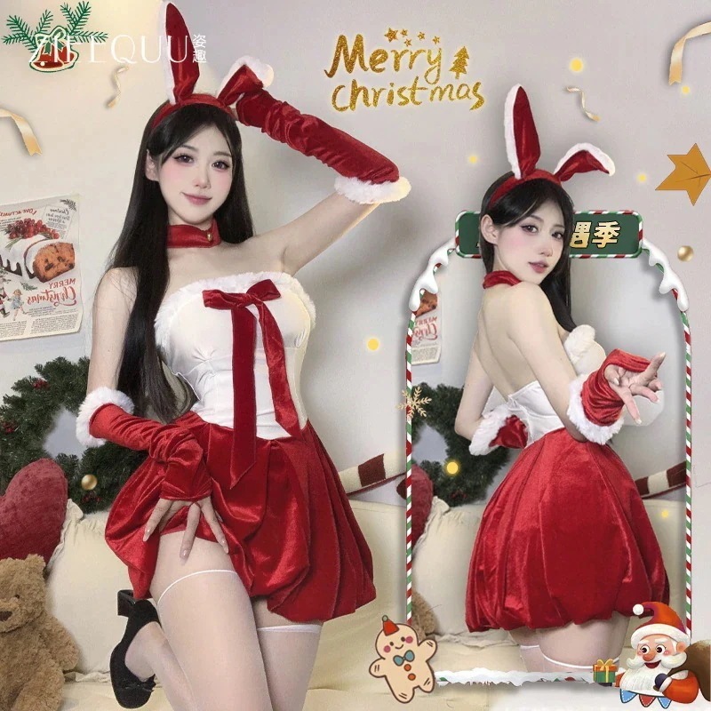 セクシーなハロウィーン クリスマス コスチューム セット ナイトクラブ バニーガール セクシー メイド 誘惑 パーティードレス クリスマス