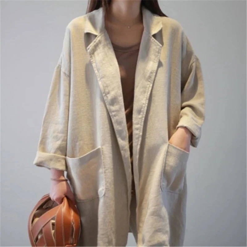 人気なリブニット Tシャツカットソー 綿麻 スーツカーディガン 夏 レディース ゆったり セミロング アウター トップス 韓国ファッション トップス UVカット