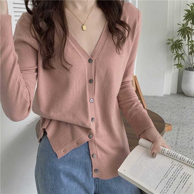 人気なリブニット ニット カーディガン レディース 春秋 新作 韓国ファッション 気質 百掛け 長袖 トップス カーディガン