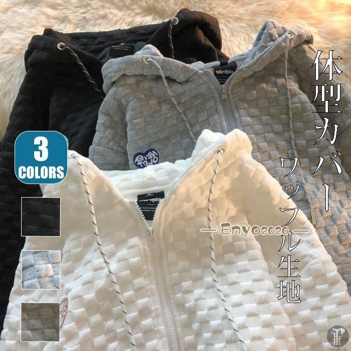 パーカー ワッフル生地 ジップアップパーカー レディース パーカー フード付き 体型カバー 秋 スポーツ おしゃれ 可愛い チュニック