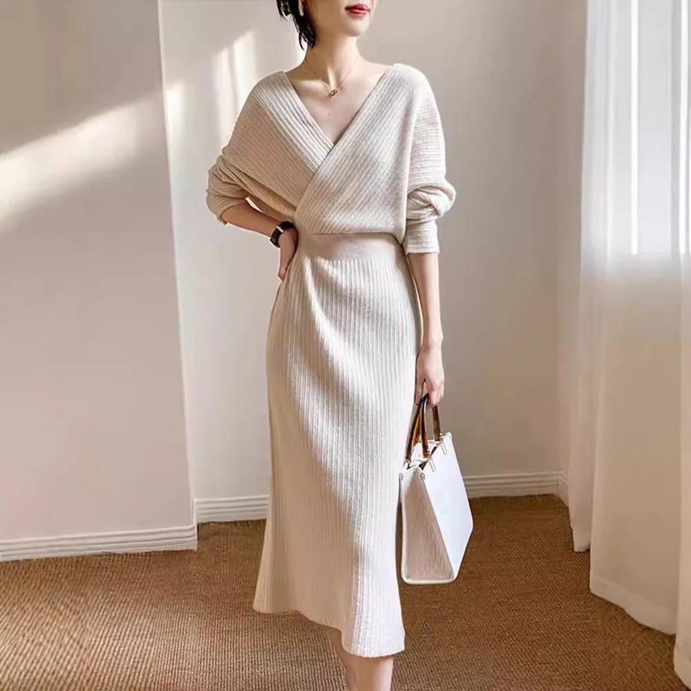 セーターワンピース秋冬プリーツスカートきれい長袖レディースロングスカートスリムおしゃれカジュアルワンピース 長袖ロング マキシ丈ワンピ