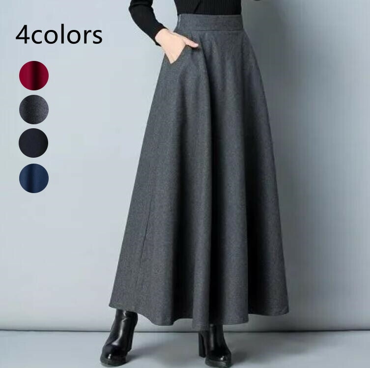 ウール混 ハイウエストスカート ボトムス ギャザースカート スカート Aライン マキシ レディース ロングスカート 大きいサイズ ひざ下 マキシスカート 無地 春 秋 フレアスカート ロング 膝下
