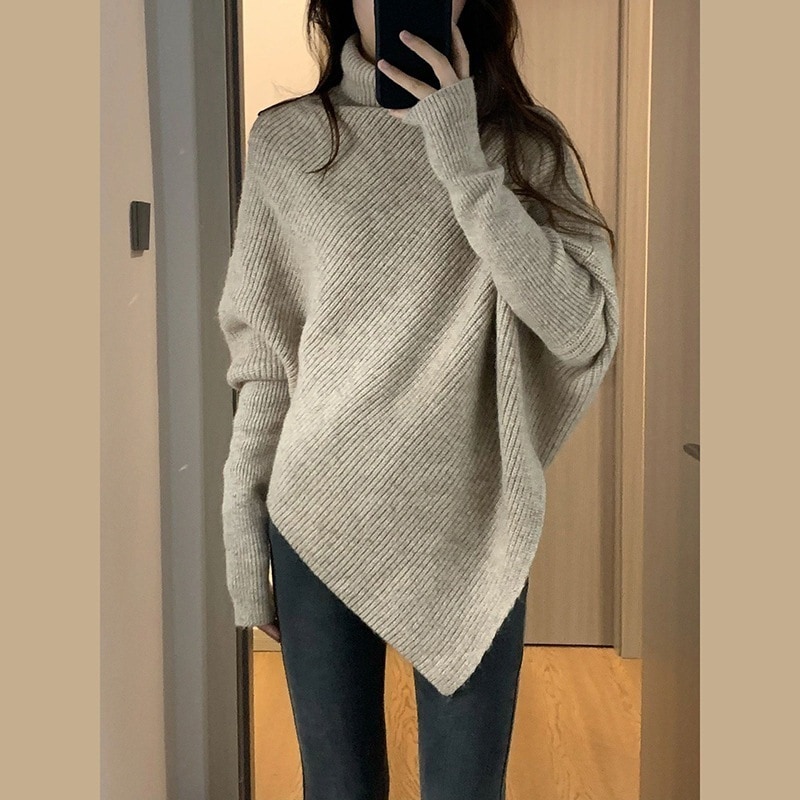 デザイン感 タートルネックセーター カシミヤタッチ 秋の新作だるい風ゆったりバットマンニットトップス ベーシックニット ニット