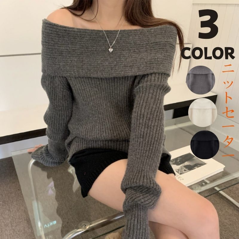 韓国ファッションレディース ベーシックニットカシミヤタッチ 長袖ボートネックセーター ニット