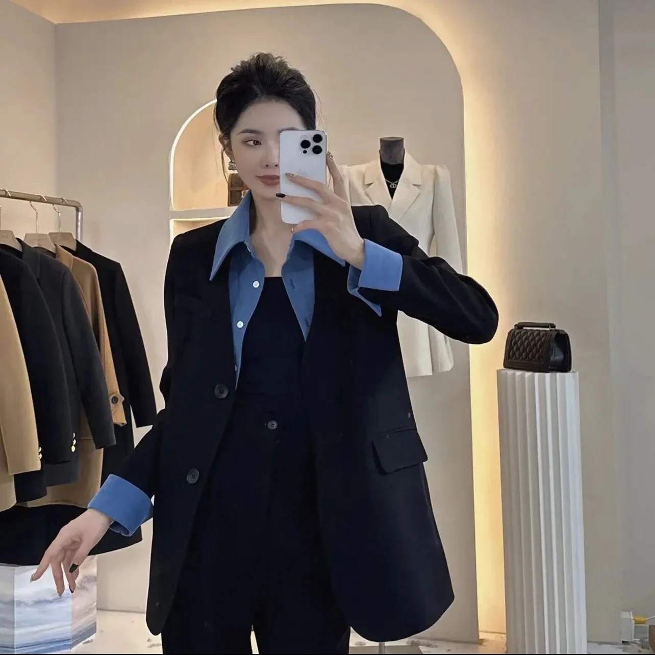 スーツ カジュアル フェイク ツーピース スーツ ファッション ウエスタン スタイル 春 新作 オールマッチ ルーズ スリム スーツ ジャケット レディース