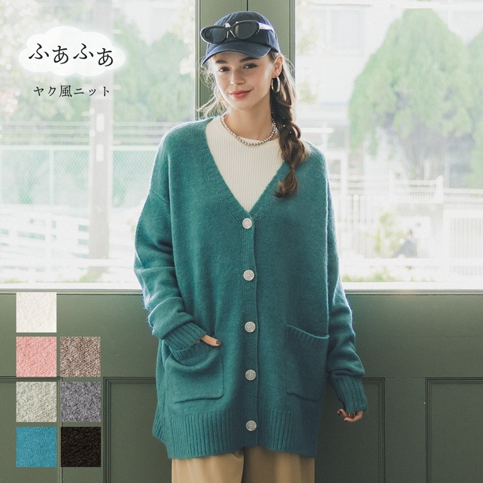 coca 限定値下げ ふあふあヤク風 ニットカーディガン レディース ヤク風 羽織り ミディアム丈 Vネック 長袖 無地 ふわふわ