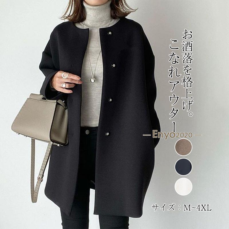 ノーカラージャケット レディース 40代 50代 秋 冬 秋冬 無地 ツイード 長袖 アウター トレンチコート