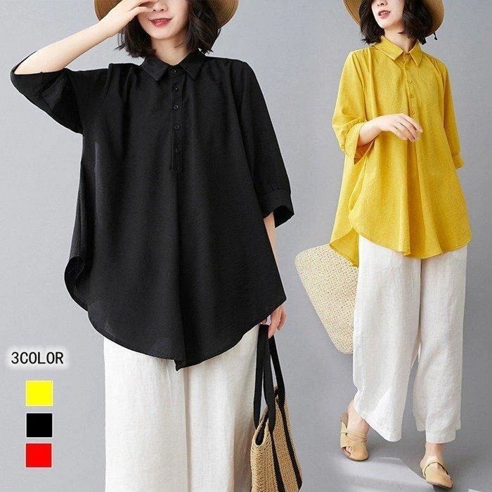 チュニック レディース トップス シャツ 半袖 ロング丈 カジュアル ブラウス 夏 大きいサイズ チュニック