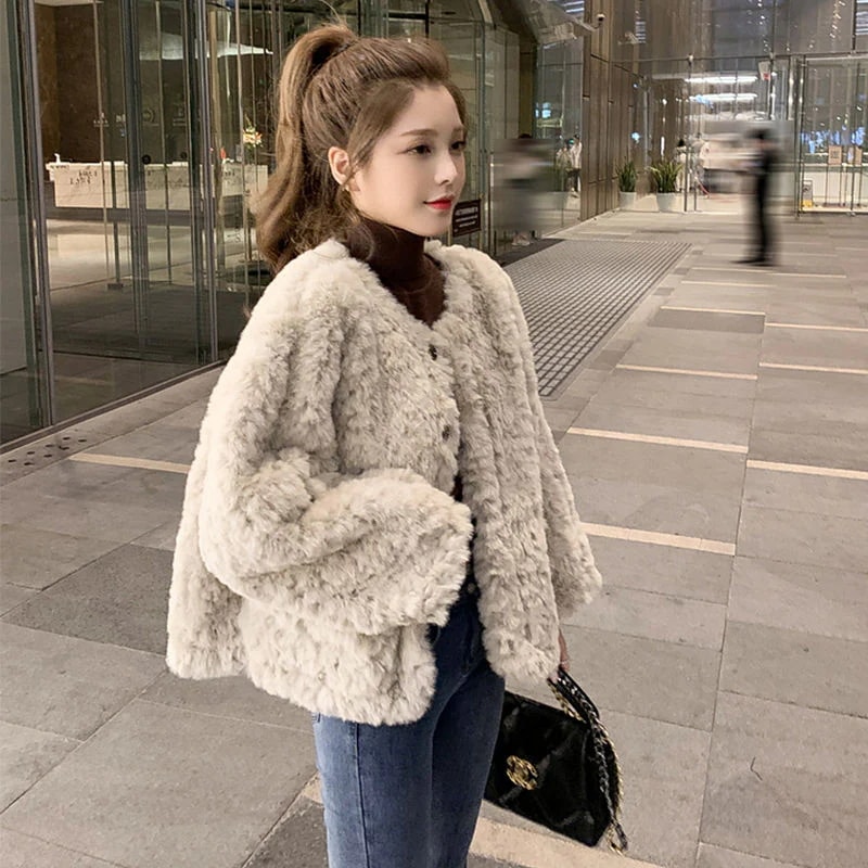 ットコート モコモコ 防寒 可愛い アウター 厚手キルティングアウター ファー 毛皮アウター