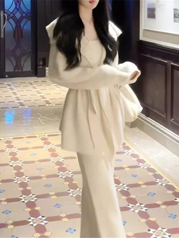 秋冬 新作 おしゃれ 気質 レディースセットアップ ニット アウター 二点セット 上下セット セーター ニットワイドパンツ セットアップ