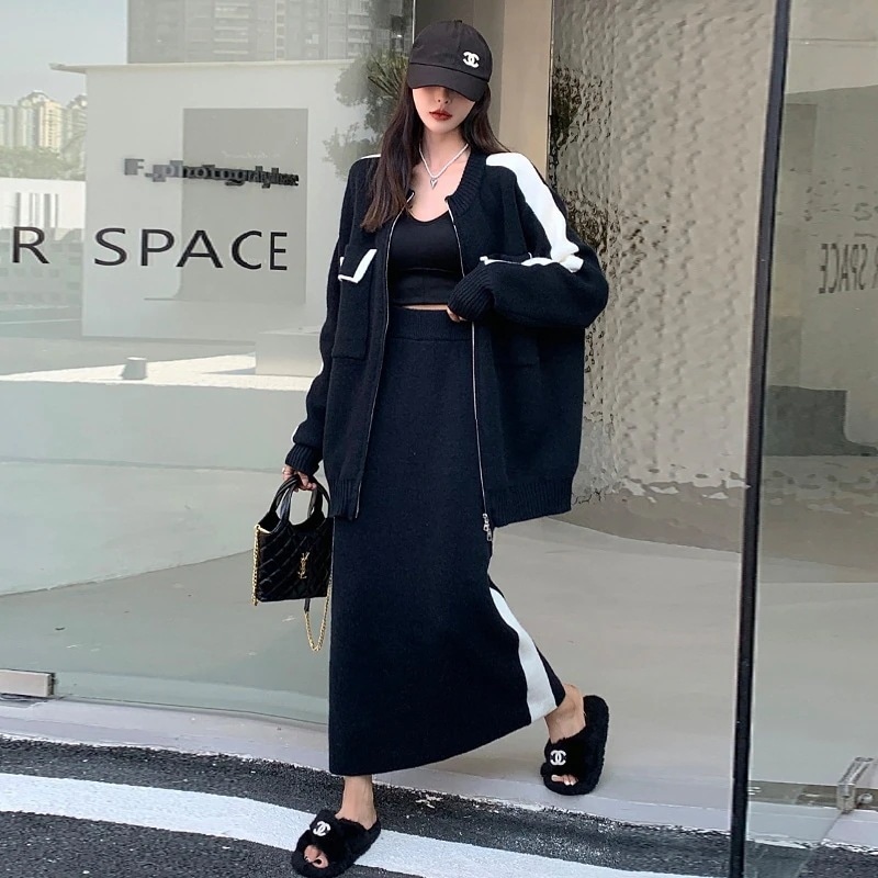 スウェット上下セットヨーロッパ製ポケットニットセット秋冬の新作ゆったりとしたカラーがおしゃれなセーターの半身スカート2点セット セットアップ