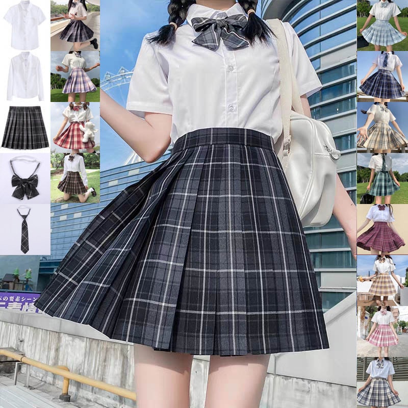スカートセット 40色 女子高生 JK 学生服 可愛い かわいい 学院 高校 スクール コスプレ仮装 学園祭文化祭 半袖長袖 シャツ リボン ネクタイ ミニ プリーツ チェック 制服スカート