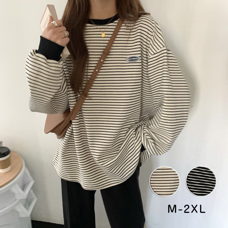 2024春新作トップス ボーダー レディース カジュアル ゆったり 大きいサイズ オーバーサイズ 何度も着たくなる1枚 春定番 ボーダー ニットタッチ スウェット