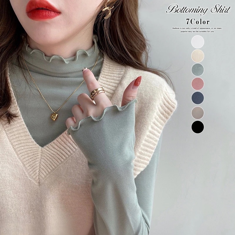 韓国ファッションレディース ベーシックニット 気質ハーフハイネックボトムシャツ女性インナースリムニット長袖春秋ジャンパー ニット