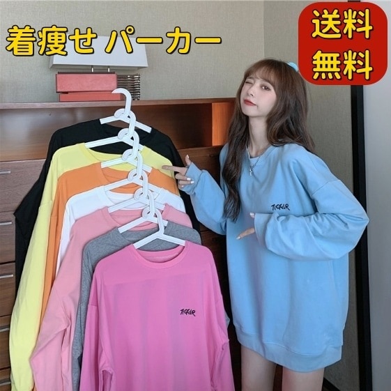 トレーナー レディース パーカー プルオーバー 春秋 Tシャツ カットソー オーバーサイズ 長袖 綿 無地 パーカー レディース トップス 大きいサイズ 韓国ファッション 上着 ゆった プリント