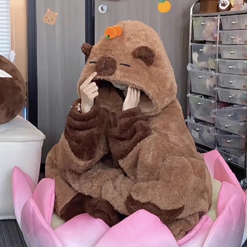 あったかルームウェアサンゴの綿毛 秋冬 カピバラパジャマ ガウン着 厚手セット ルームウェア 着ぐるみ