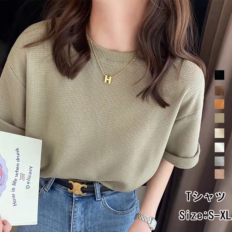 半袖女性2022年新型夏デザイン感小衆Tシャツ純色ins潮ゆったり半袖トップスワッフル Tシャツ カットソー