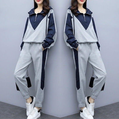 ジャージ上下セットレディーススウェットフード付き2点セット長袖トレーナーロングパンツパーカー運動服部屋着おしやれ着痩せ