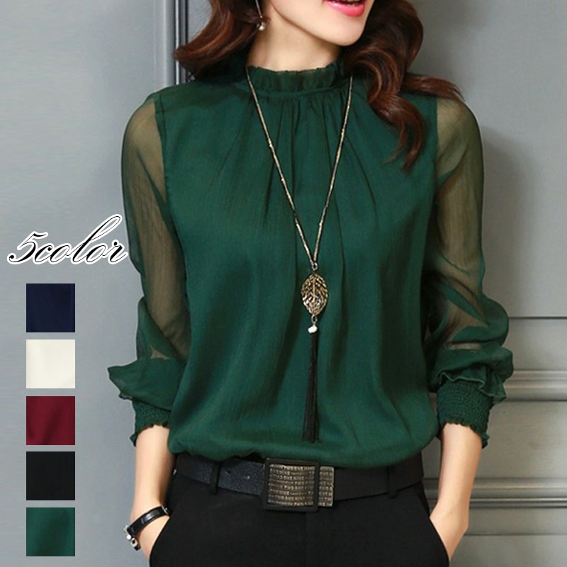 シフォンブラウス シアーブラウス ボリューム袖