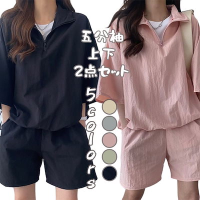セットアップ 五分袖 ジッパー 上下2点セット 戸外 日焼け止め レディース 部屋着 ルームウェア 夏服 半袖Tシャツ+ショートパンツ おしゃれ 韓国ファッション きれいめ
