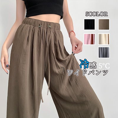 痩身 夏のレディースアイスシルクワイドレッグパンツ ハイウエスト ドレープ ゆるい