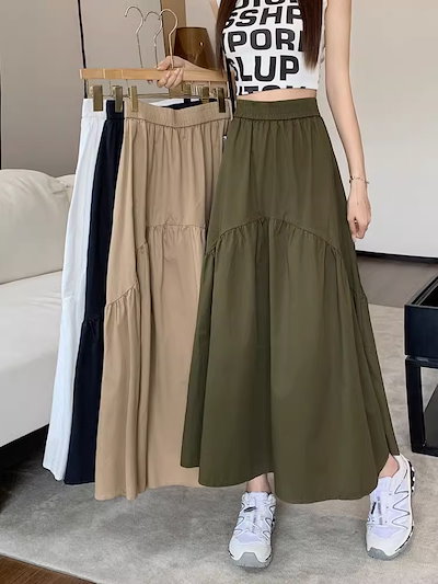 2024新作 おしゃれ シンプル スカート ハイウエスト 可愛い 百掛け ロングスカート 大きめサイズ